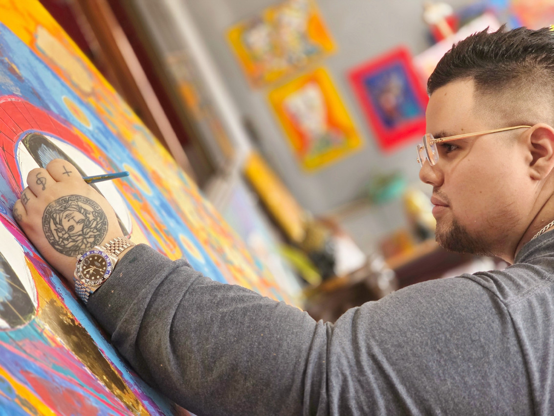 Su trayectoria comenzó en la música a los 13 años y, más tarde, se especializó en producción musical, disciplina que lo llevó a residir en Panamá, donde conoció a quien considera su mentor, el señor C. E., padre de una reconocida cantante panameña. Este encuentro marcaría el inicio de una nueva etapa: la consolidación de su identidad como pintor.
